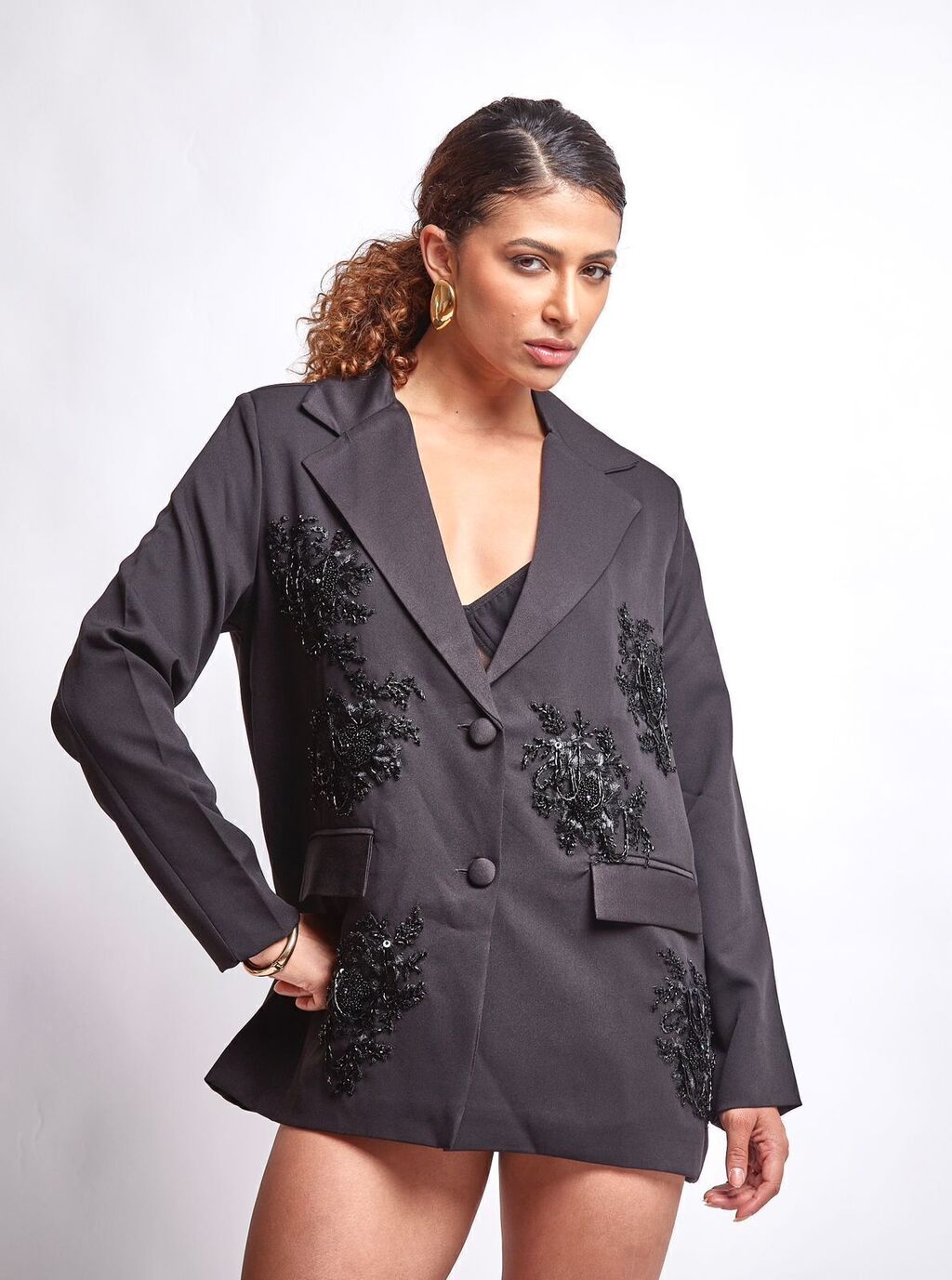 A beleza e sofisticação dessa peça está nas flores bordadas em pedraria feito à mão, dando um toque de elegância e exclusividade para seus looks.