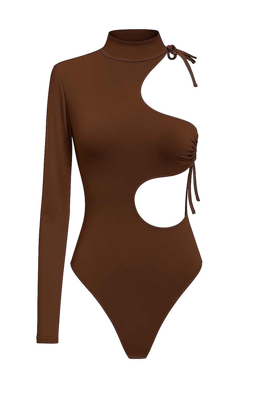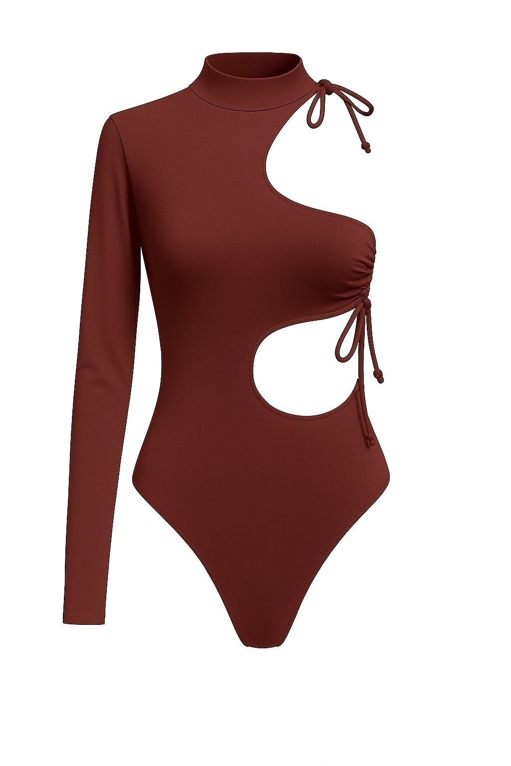 Destaque-se com o nosso Body Aria assimétrico em manga longa, confeccionado em tecido confortável e de alta elasticidade. Com design moderno, este body apresenta recortes estratégicos nas laterais e no ombro, além de amarrações ajustáveis que valorizam a silhueta e trazem um toque sensual com elegância.